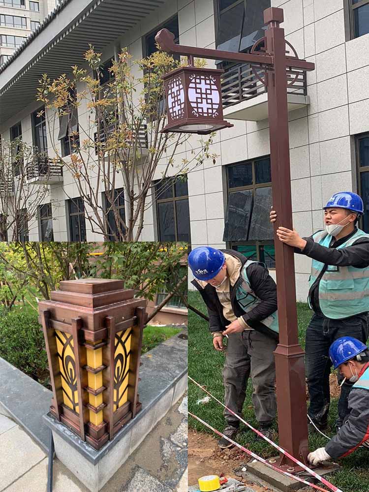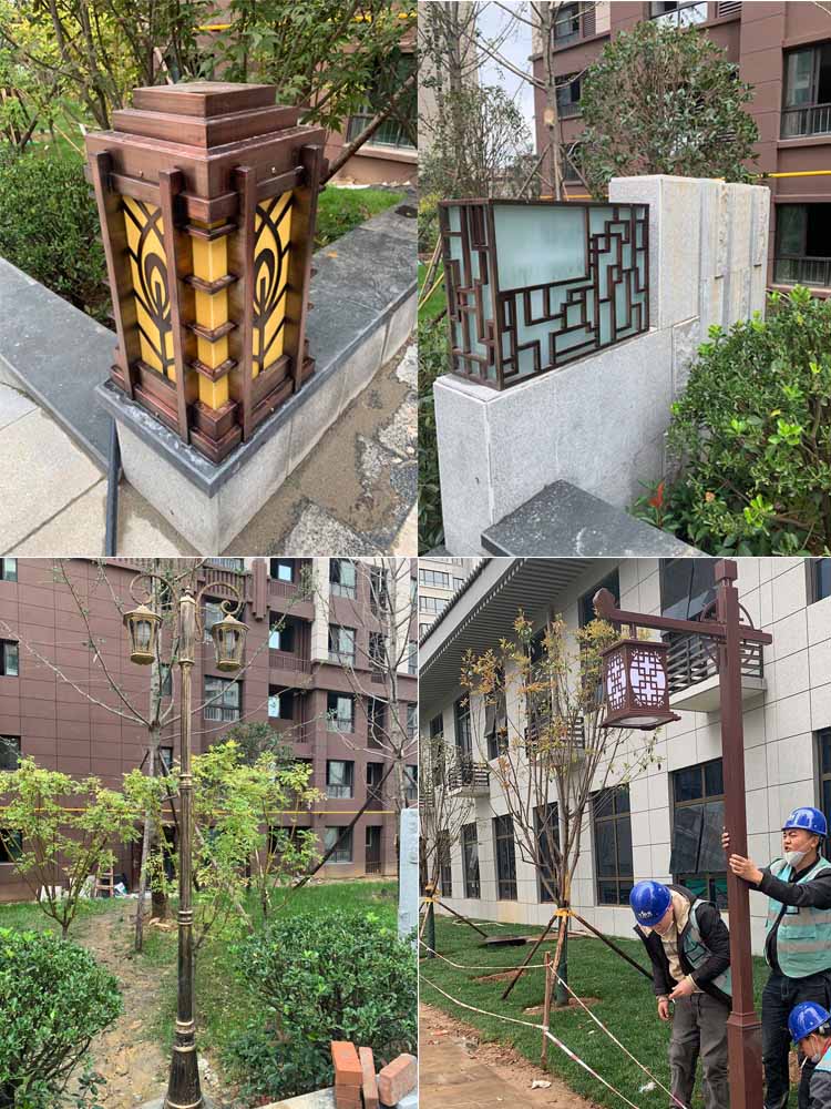 簡介—— 陜建翠園錦繡庭院燈、柱頭燈項目,是我公司2020年做的地產項目,項目當?shù)匚挥谖靼彩虚L安區(qū)航天大道,該項目的燈具主要是以復古為主,燈體的顏色采用古銅色,與整個項目的建筑特點相結合。