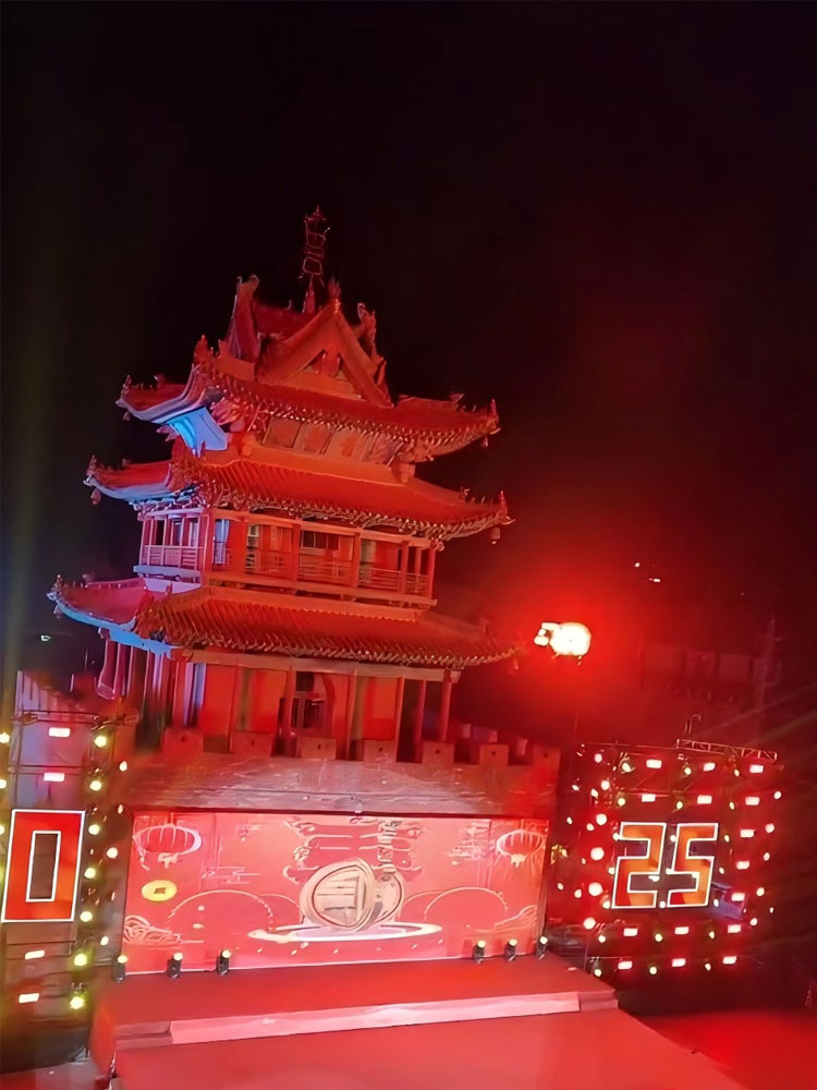 隰縣鼓樓又稱大觀樓,位于縣城正中心,是全國現(xiàn)存的20多處明代鼓樓中的一座。它位于縣城正中心,占地196平方米,通高約27米,磚拱門洞,十字貫通,至今已有390多年的歷史,是隰縣的象征。2025我司對鼓樓做了整體的亮化工程,采用大功率投光燈,在鼓勵的四角確定安裝機位,對鼓樓進項了整體的打亮,不但很好的保護鼓樓外立面不被破壞,整體出來的效果也是得到隰縣的認可。