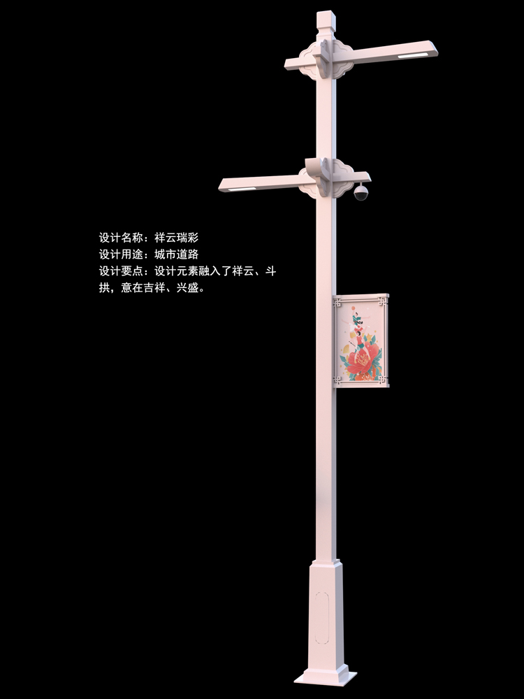 簡介—— 設計要點:設計元素融入了祥云,斗拱,意在吉祥、興盛。 專利種類:外觀設計 專利號:ZL 2021 3 0534562.5