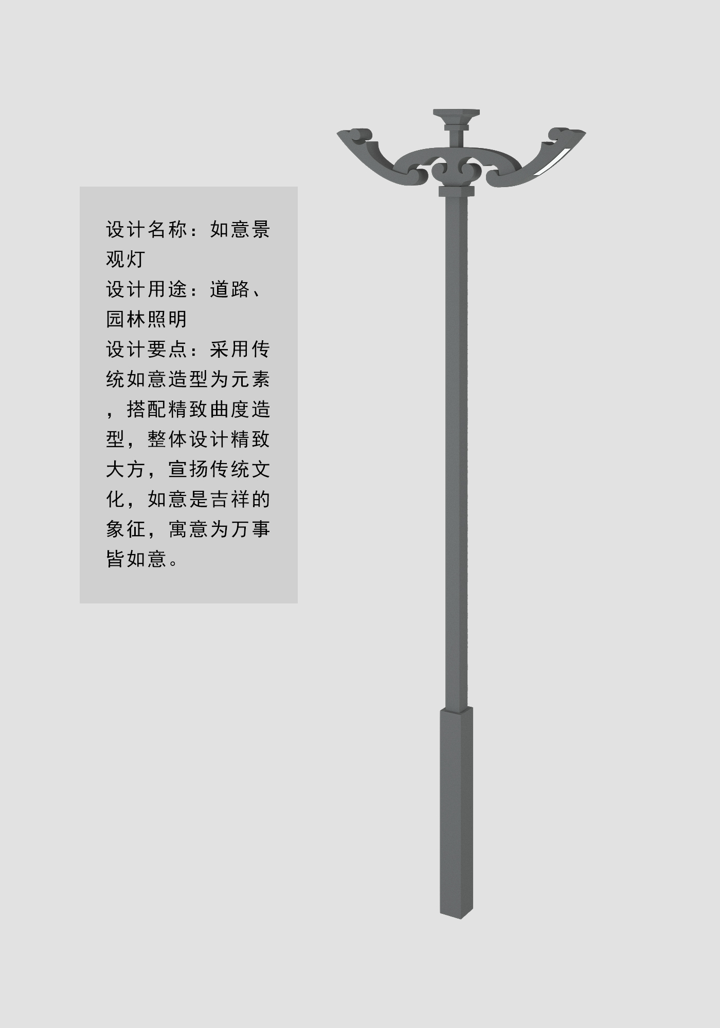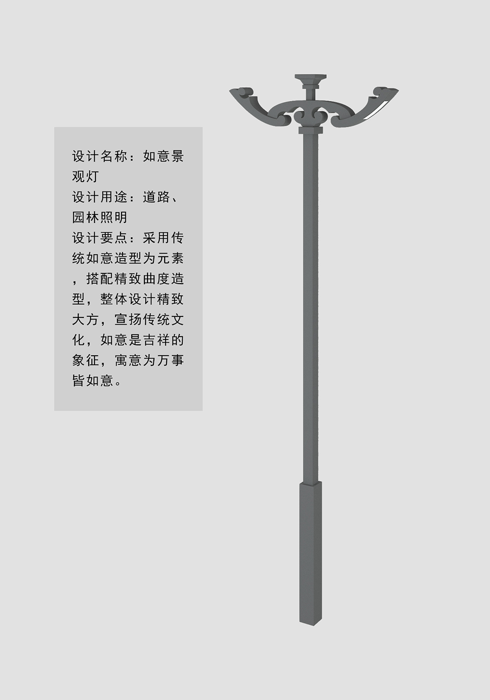 設計要點:采用傳統如意造型為元素,搭配精致曲度造型,整體設計精致大方,宣揚傳統文化,如意是吉祥的象征,寓意為萬事皆如意。